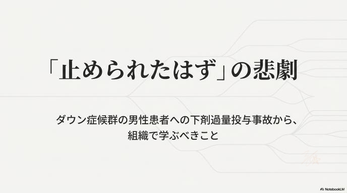 この事故は、決して特殊なケースではありません。専門性の高い閉鎖的な環境、個人の経験則に頼る文化、バイアスによる異常所見の見落とし、人手不足を安全より優先する判断。これらは、どの医療現場にも潜んでいるリスクです。