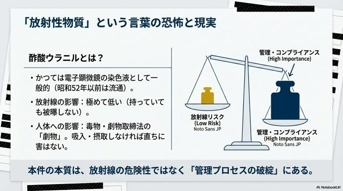 こうして初めて、「本物の酢酸ウラニルがどこにもない」という事実が確定したのです。もし担当者が一人で抱え込んでいたら、この事実はさらに数年、闇に埋もれていたかもしれません。