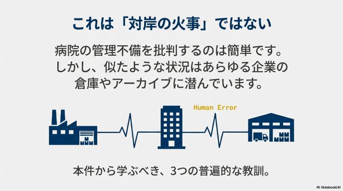 「病院の管理がずさんだった」と批判するのは簡単ですが、似たような状況はあらゆる職場に潜んでいます。